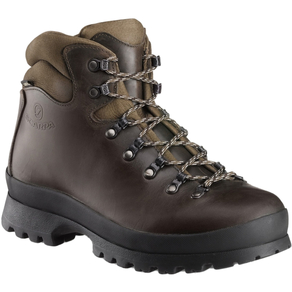 The Ranger is a classic SCARPA model built to the last but with the easy comfort to wear everyday Hillwalking. The Ranger is built using traditional bonded and lasted construction which means it had a sculped shape and more supportive fit from the start. The full grain leather upper is tough and durable, with a softer leather cuff for instant walking comfort. The Gore-Tex membrane guarantees waterproof protection. Build around the BD last, the Ranger is one of the broadest fitting SCARPA models. The Vibram Kalden sole has an integrated rand making it highly durable and resistant to degradation. The tread pattern of the sole is optimised for UK conditions with wide spaced lugs to help clear sticky mud and a pronounced heel brake for descending grassy slopes.