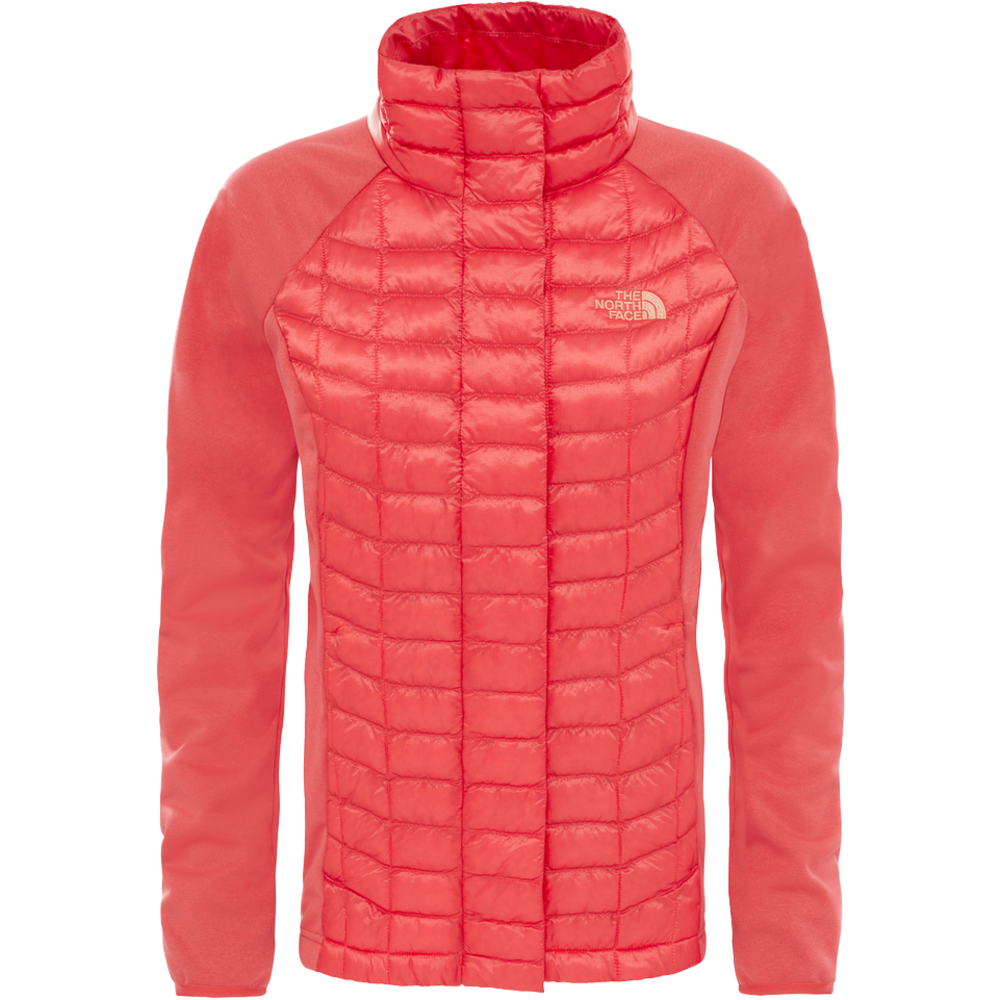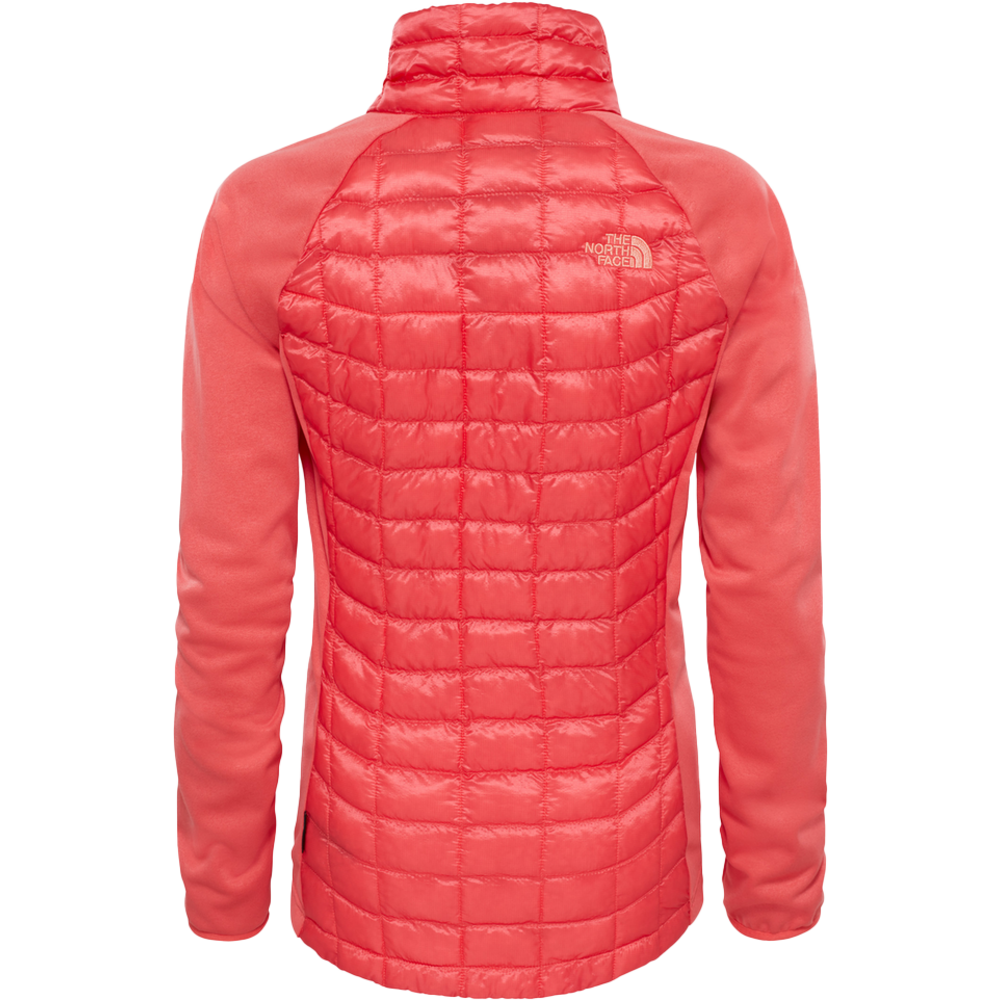 A new warm and water-resistant hybrid jacket, the breathable ThermoBall Hybrid Full Zip combines stretch double-weave soft shell sleeves and lower body panels with an insulated ThermoBall chest and back.