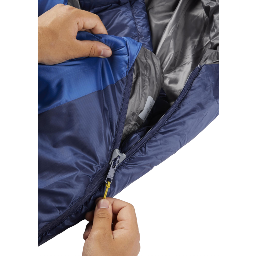 • YKK 3/4 length main zip with synthetic insulated zip baffle to trap warmth