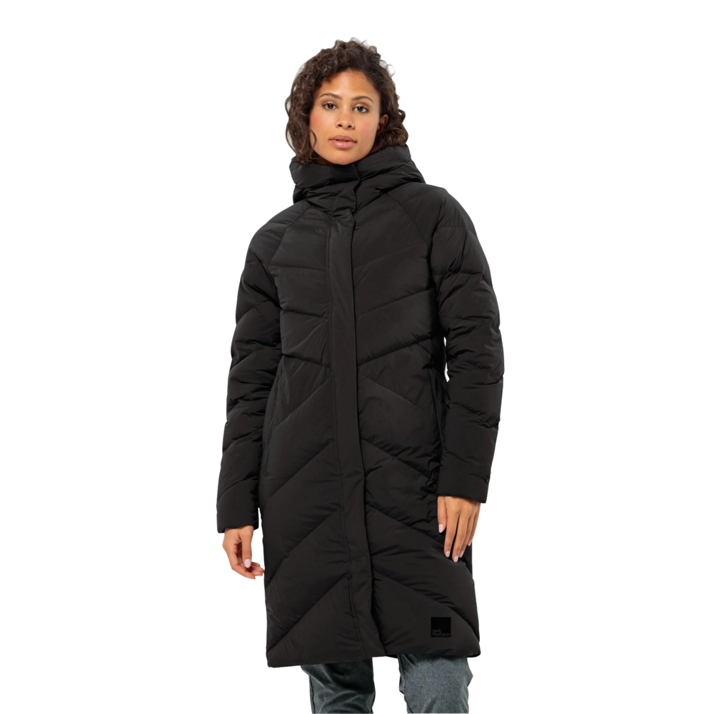 The MARIENPLATZ down coat combines a modern, feminine look with first class warmth and comfort. The high fill power, RDS certified down fill offers very good heat retention. So when you're out and about, you'll be cosy and warm. The coat will also withstand snow or rain showers, thanks to the windproof and water repellent TEXASHIELD shell fabric. This fabric is also breathable and stretchy, so comfort is assured. The longer cut of the coat protects the thighs and seat from the winter weather. The hood and high collar provides additional cold weather protection for the head and neck.