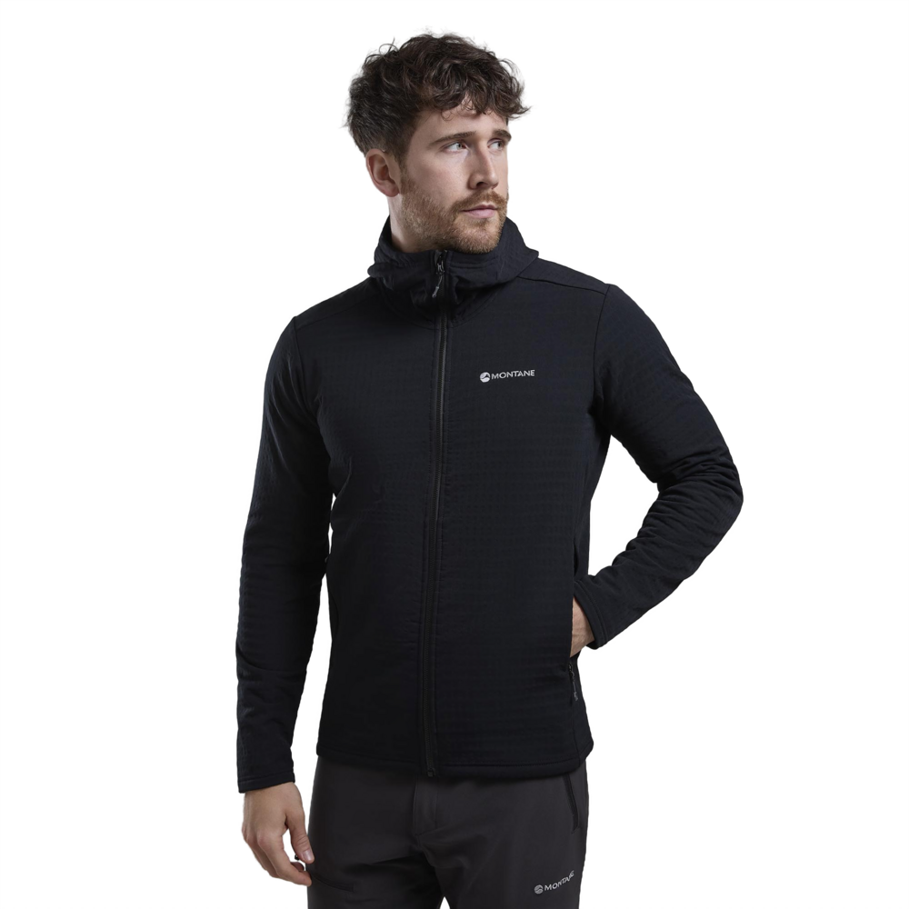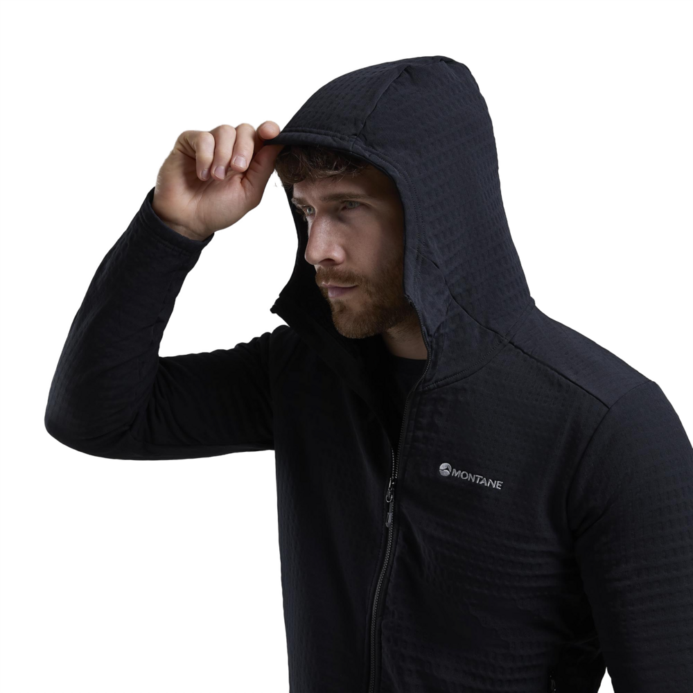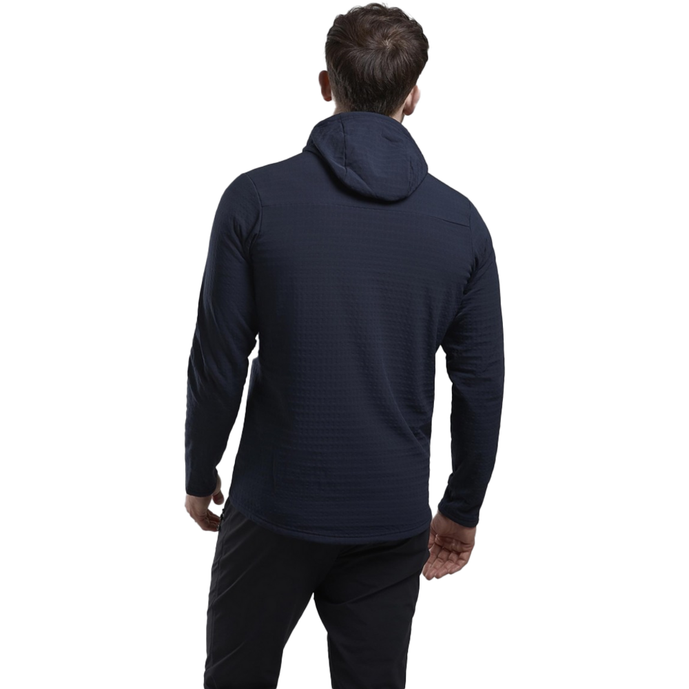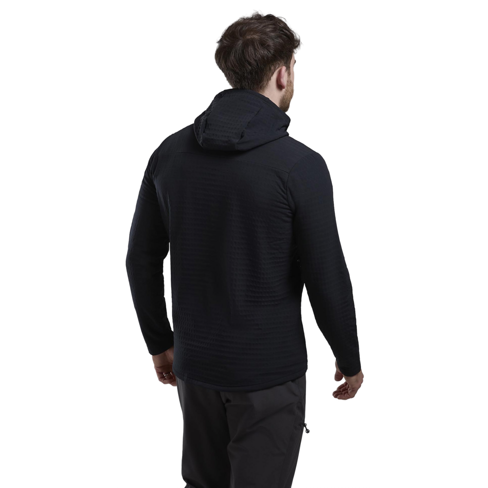 Designed as a mid-layer for active mountain use in colder conditions, the Protium XT Hoodie uses double weave fleece with a woven outer and a midloft brushed grid backer which is highly effective at assisting temperature regulation.