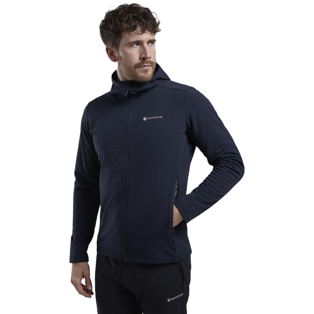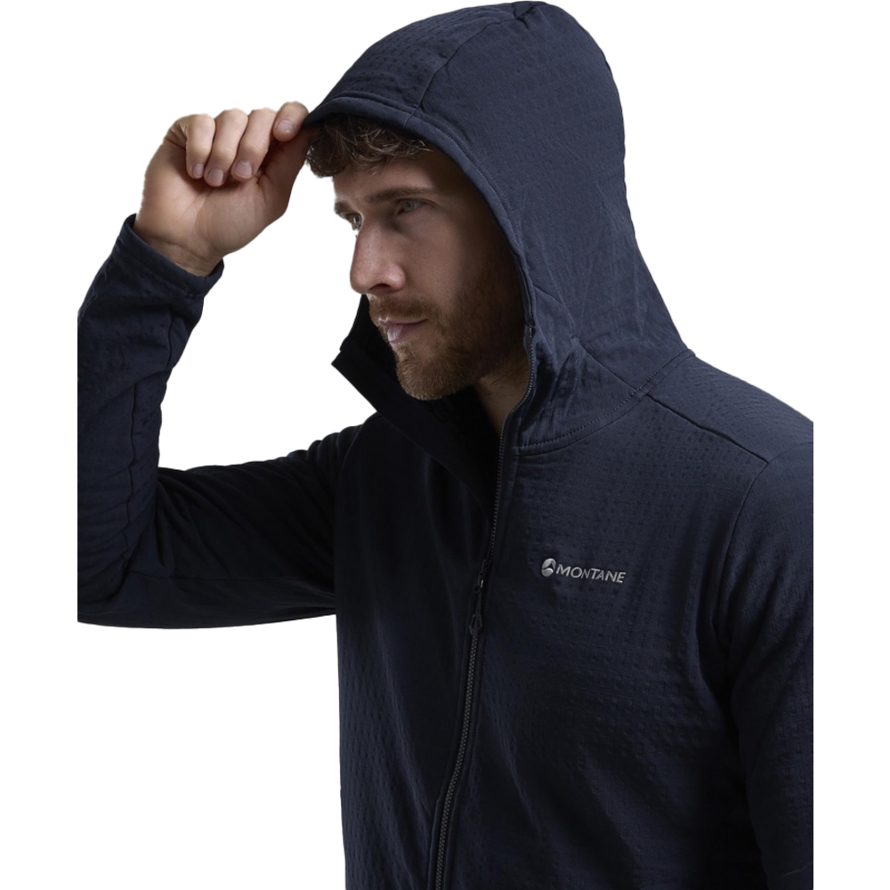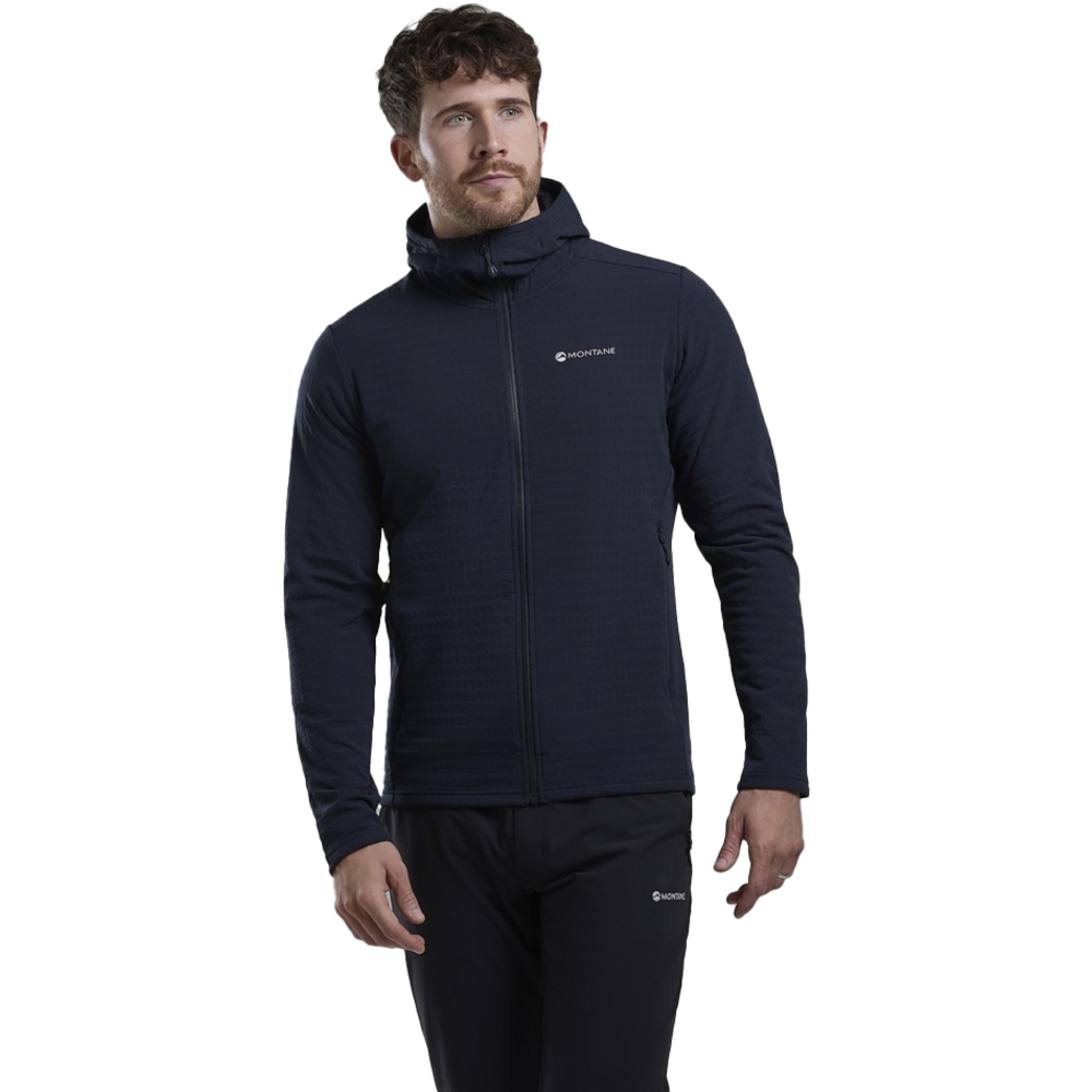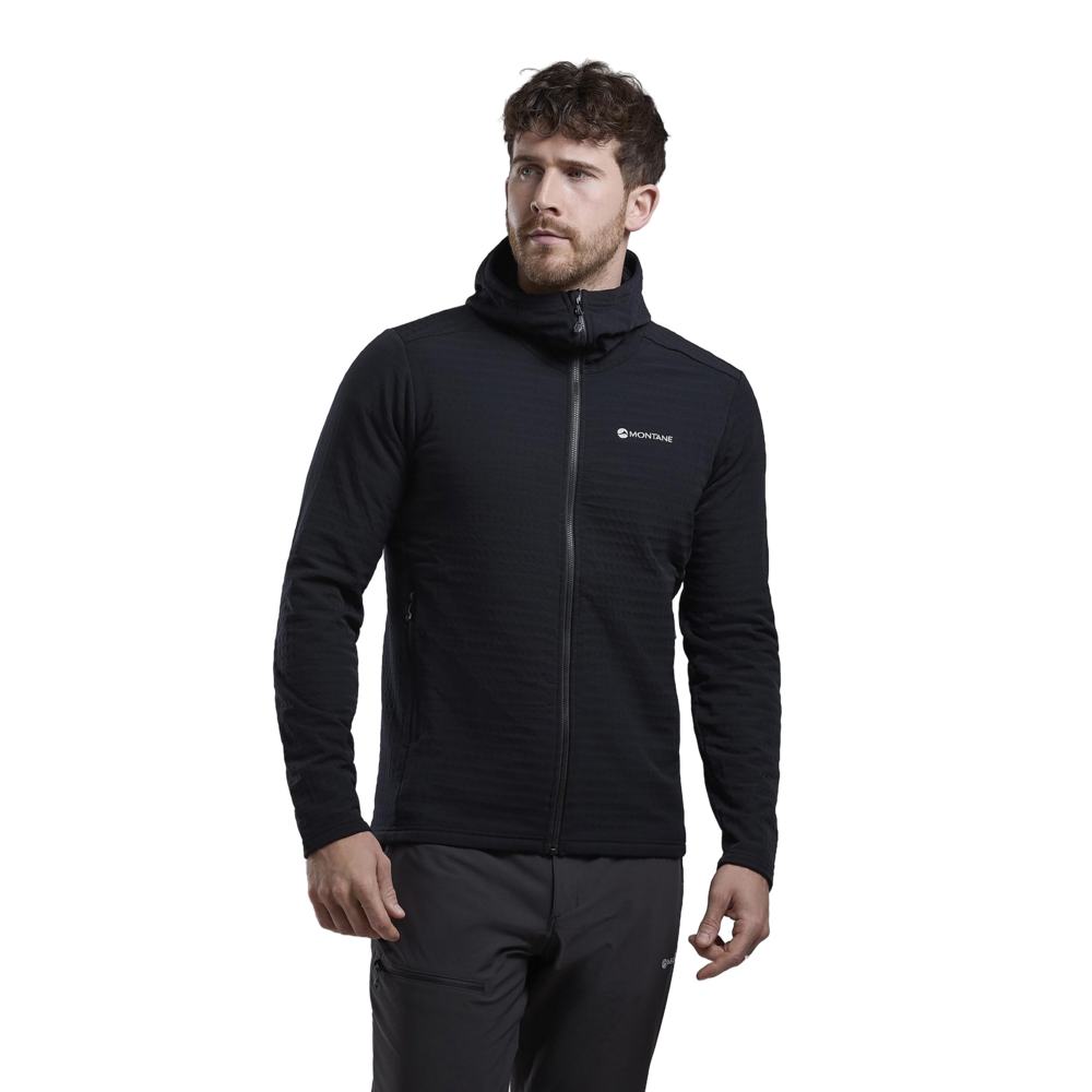 Designed as a mid-layer for active mountain use in colder conditions, the Protium XT Hoodie uses double weave fleece with a woven outer and a midloft brushed grid backer which is highly effective at assisting temperature regulation.