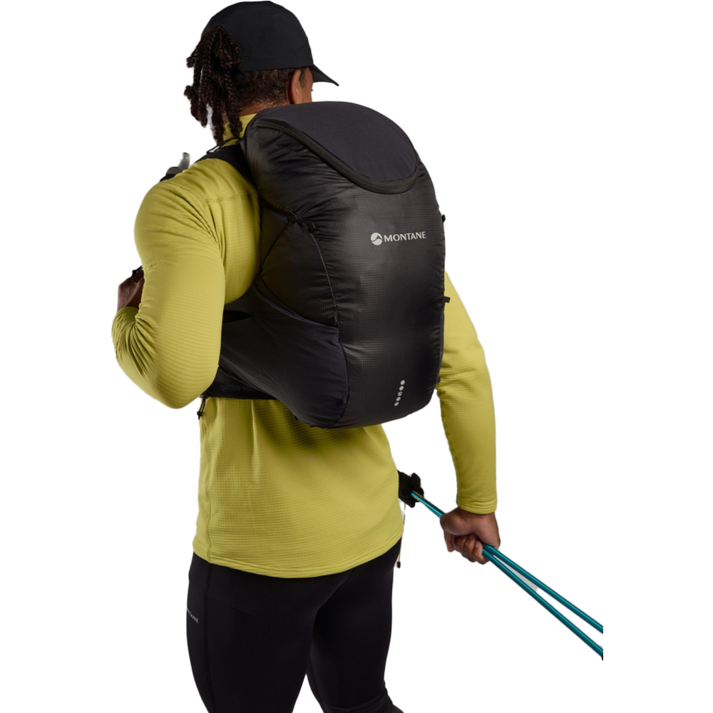 Built to be worn not carried this ergonomically fitted, body hugging vest pack is as secure as a Gecko! An unrivalled large load carrying construction together with a multitude of storage options, most accessible whilst on the move, makes the Gecko VP 20+ the ultimate multi-day running vest pack.