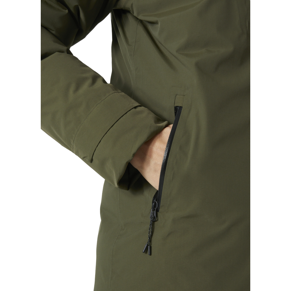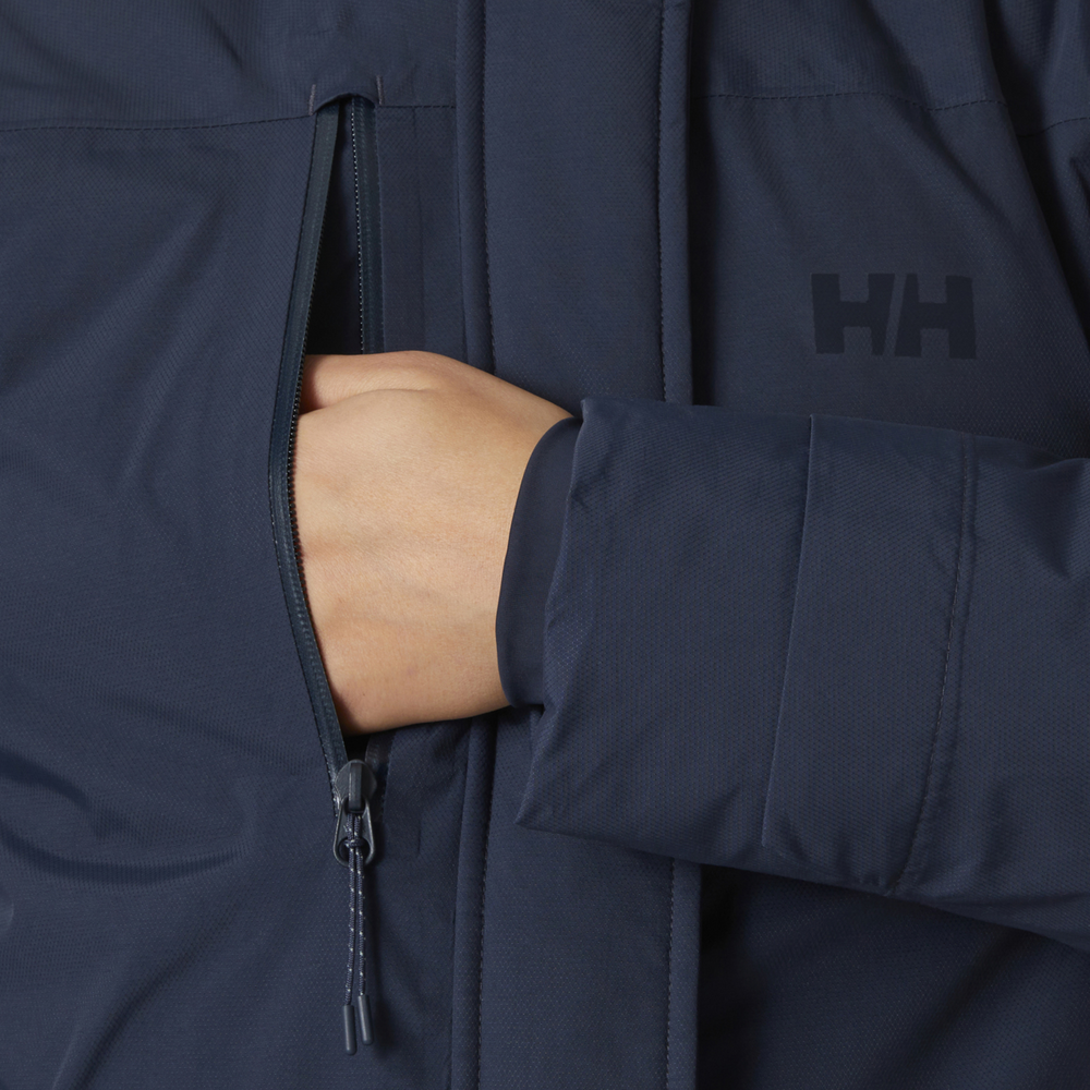 The Womens Adore Parka is the go-to piece for getting in and around the city in winter. HELLY TECH Performance technology offers waterproof/breathable protection from the elements while synthetic insulation keeps the warmth in, even when wet. With added fold-up reflectives for peace of mind when the days get shorter and hand pockets with brushed lining for an added touch of softness. This parka is a certified bluesign product.