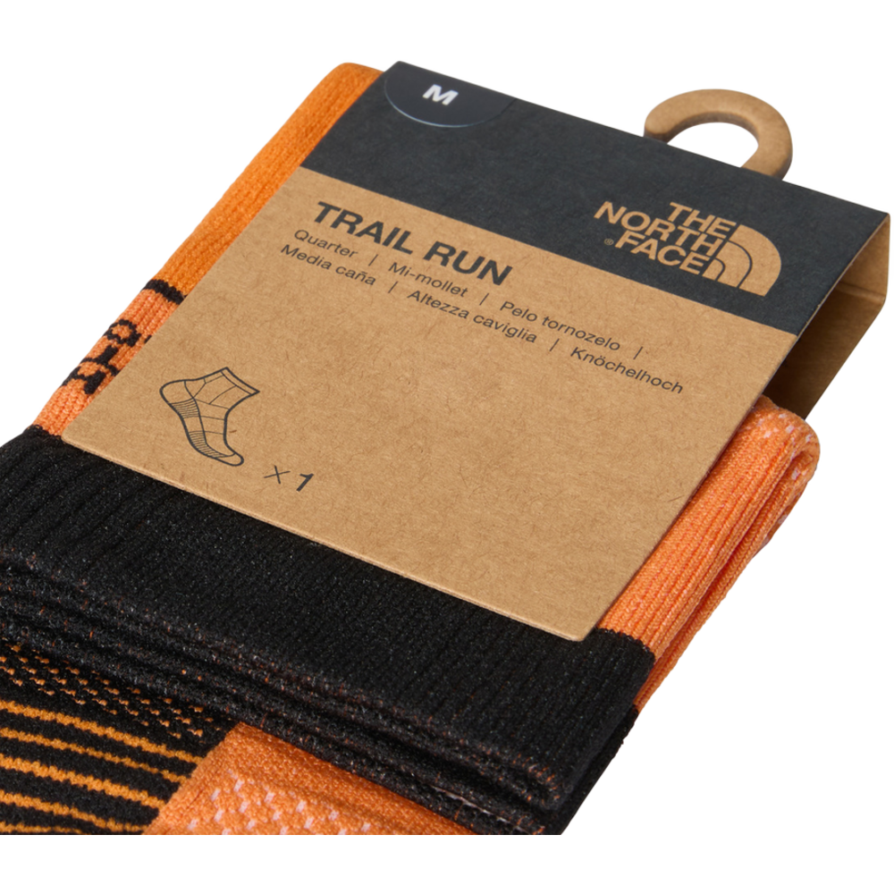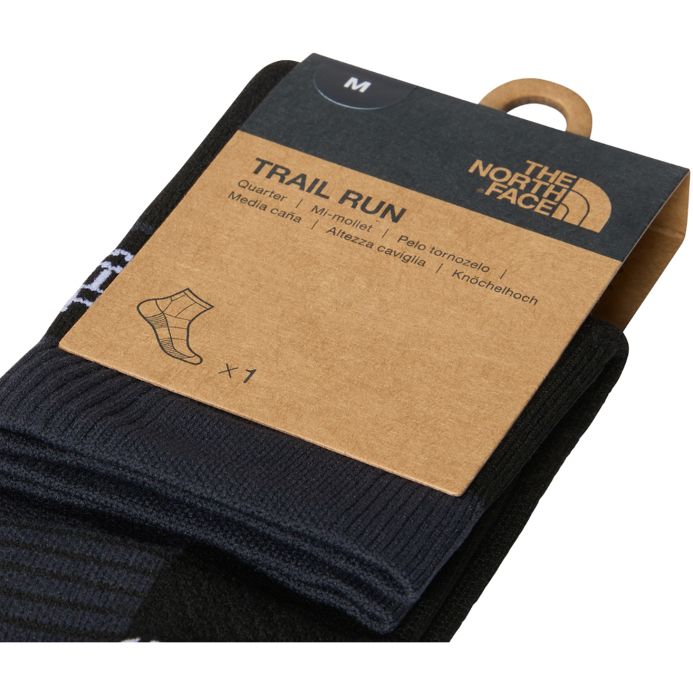 Maintain comfort in your feet as you push through the trail by slipping into the Trail Run 1/4 Socks. With an extended heel, cushioning at the ankle and slightly padded soles, they provide long-lasting protection right up to the final mile. Compression ankle reinforcement provides extra support as you navigate rough, rugged and slippery terrain.