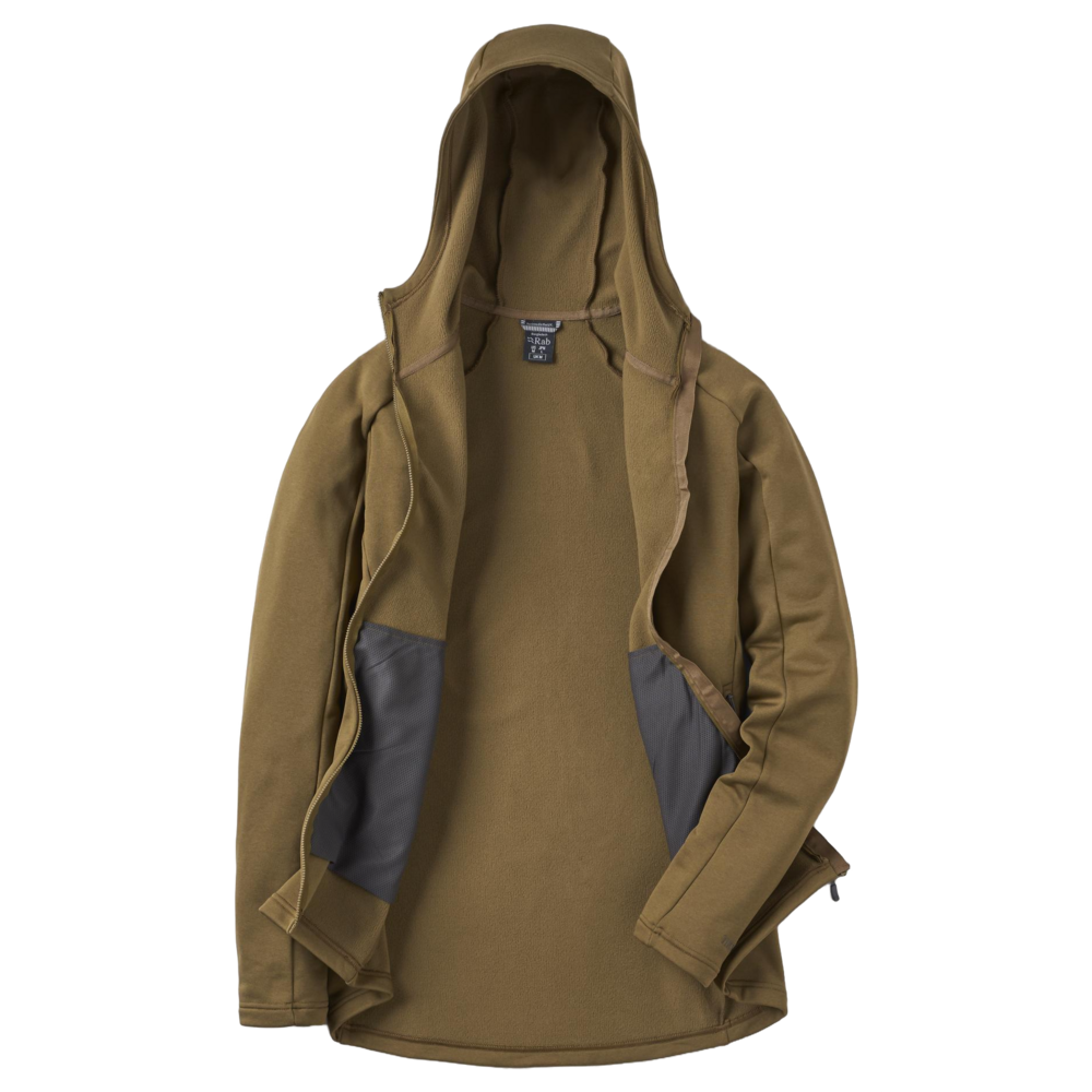 Midweight, smooth-faced, stretch fleece hoody offering easy low-bulk warmth for cold-weather hiking, scrambling, and climbing. Now built with fully recycled Thermic fleece, it's breathable and versatile.