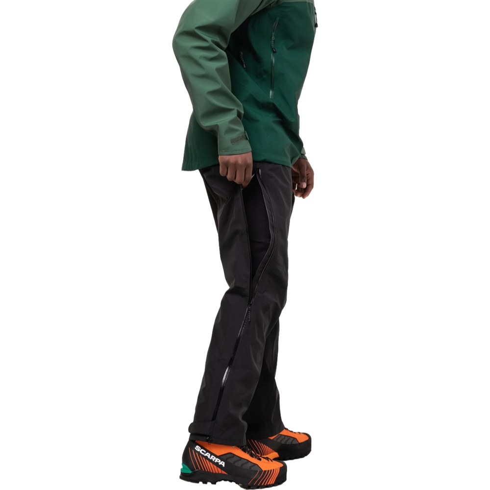 Makalu Pants use a GORE-TEX 75D fabric throughout and a PFAS-free DWR that ensures reliable performance. 3/4 length 2-way side zips allow for easy layering as well as added ventilation when required.