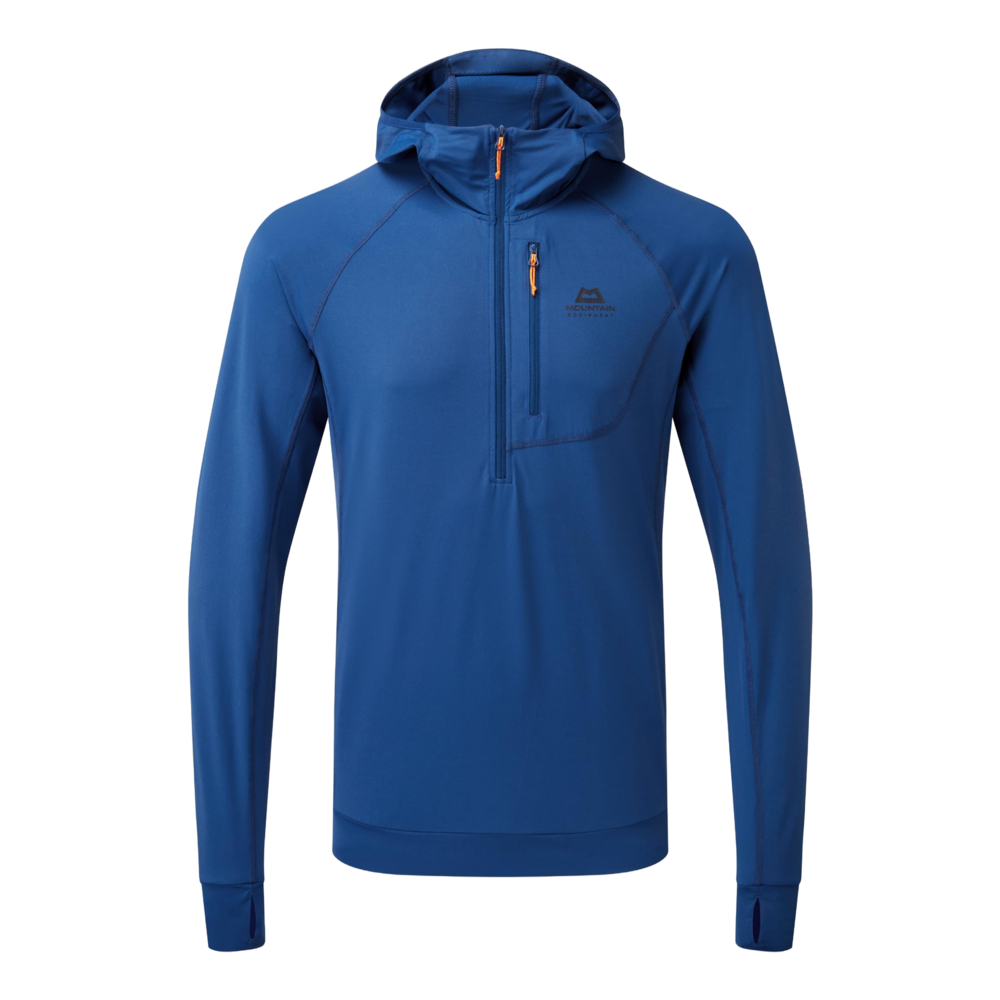 A versatile stretch hooded top for keeping the sun and wind at bay. From the sea-sprayed cliffs of Pabbay to the iconic spires of Patagonia and golden Chamonix granite, the Aiguille Hooded Top is a quick-drying and breathable technical layer for long mountain days. The durable 175g stretch jersey fabric offers good abrasion resistance and some wind protection on belays or ridgelines. In contrast, the soft fabric ensures next-to-skin comfort and efficient moisture management during demanding approaches, run-out cruxes and alpine tours. The high neck and close-fitting hood provide invaluable sun protection on glacier approaches or south-facing walls, and the double-layer cuffs with integrated thumb loops offer extra warmth at windswept belays. With a slim fit, the Aiguille layers well beneath a shell or insulating layer, fitting neatly under a harness without bagging out and obscuring access to crucial protection.
