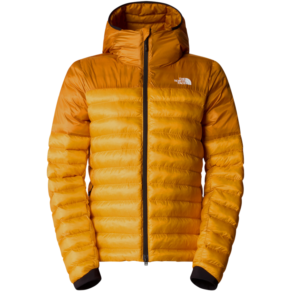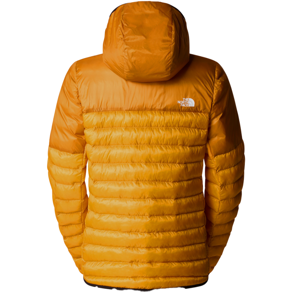 Pull on the Terra Peak Hooded Jacket and keep the cold at bay while you hike, courtesy of warming-even-when-damp ThermoBall Eco insulation. Hardy recycled ripstop makes this jacket a durable choice, while the baffled design complete with zipped pockets and a brushed tricot lining at the top of the draft flap brings some street style to the mountains. There are air-permeable fleece panels at the underarms, too, which control airflow to help you maintain an even temperature. When the sun comes out, the whole jacket packs neatly away into a hand pocket so that it takes up less room while you're on the move.